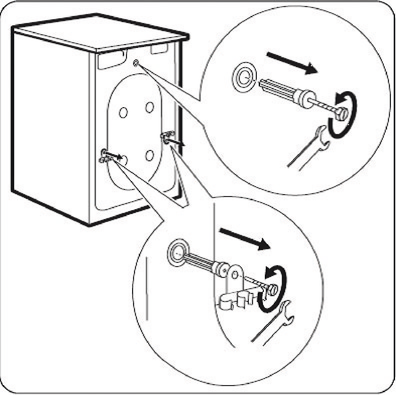 Pralka posiada 3 śruby transportowe, które są przymocowane do tylnej ściany.