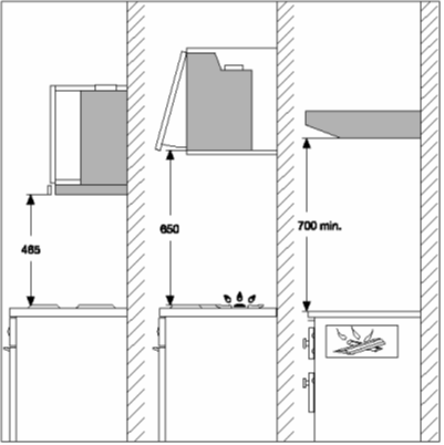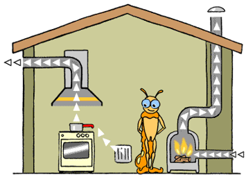 | Aby usunąć powietrze, potrzebujesz wlotu powietrza! Zachowaj szczególną ostrożność w przypadku jednoczesnego korzystania z okapu i kominka sterowanego powietrzem w tym samym pomieszczeniu lub podłączonych do tej samej instalacji wentylacyjnej (piec itp.). Wlot powietrza kompensuje ilość powietrza wyciąganego przez okap. Piec jest zasilany powietrzem zewnętrznym, co zapobiega utracie ogrzanego powietrza do jego zasilania. W przypadku braku wlotu powietrza kompensującego jego ubytek, okap może uniemożliwić prawidłową pracę pieca (albo kominka, albo gazowego podgrzewacza wody): uważaj w takiej sytuacji okap może zassać toksyczne opary do pomieszczenia - nawet niewidoczne i bezwonne! |  |