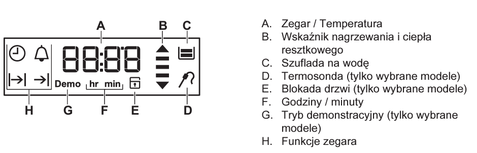 Przed użyciem piekarnika należy ustawić czas. Po podłączeniu urządzenia do zasilania lub w przypadku przerwy w dostawie energii, wyświetlacz zacznie migać automatycznie.