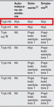 Jeśli chcesz wyłączyć funkcje Hob2Hood i dezaktywować automatyczne uruchamianie się oświetlania, wybierz Tryb H0 na panelu sterowania płyty grzejnej.