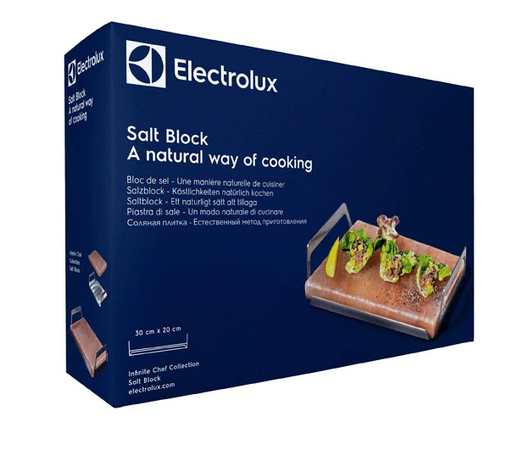 Kamień solny E2SLT z różowej soli himalajskiej jest odporny na wysoką i niską temperaturę. Można go używać na płycie grzejnej lub na grillu, w piekarniku lub jako zimną płytę do podawania potraw, w tym także lodów. Do bloku solnego firmy Electrolux dołączony jest elegancki stalowy uchwyt, który zapewnia równomierne rozprowadzanie ciepła. Umożliwia on przyrządzanie potraw na płycie grzejnej lub w piekarniku. Blok solny po rozgrzaniu utrzymuje wysoką temperaturę, co umożliwia przyrządzenie potraw wprost przy stole, zapewniając niepowtarzalną rozrywkę gościom. Przykładowe przepisy znajdziesz tutaj.