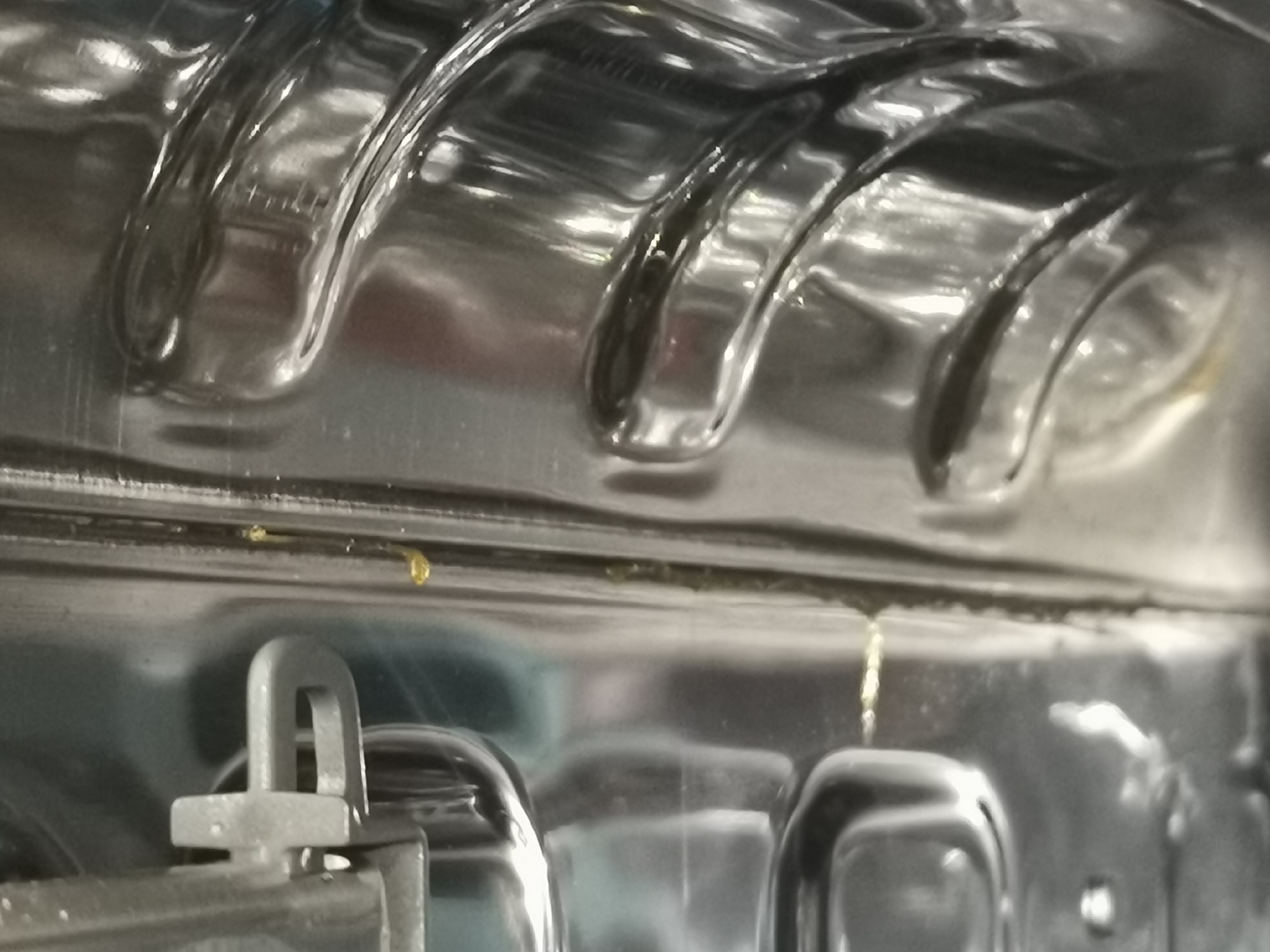 Na komorze urządzenia znaleziono niespodziewany materiał. Wygląda na to, że jest to naciek kleju lub silikonu, który może mieć negatywny wpływ na działanie urządzenia.