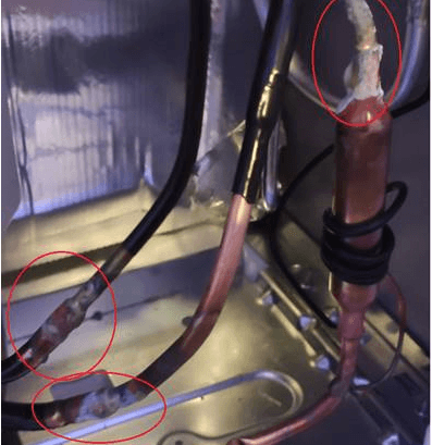 Nalot na sprężarce, rurkach z tyłu chłodziarki