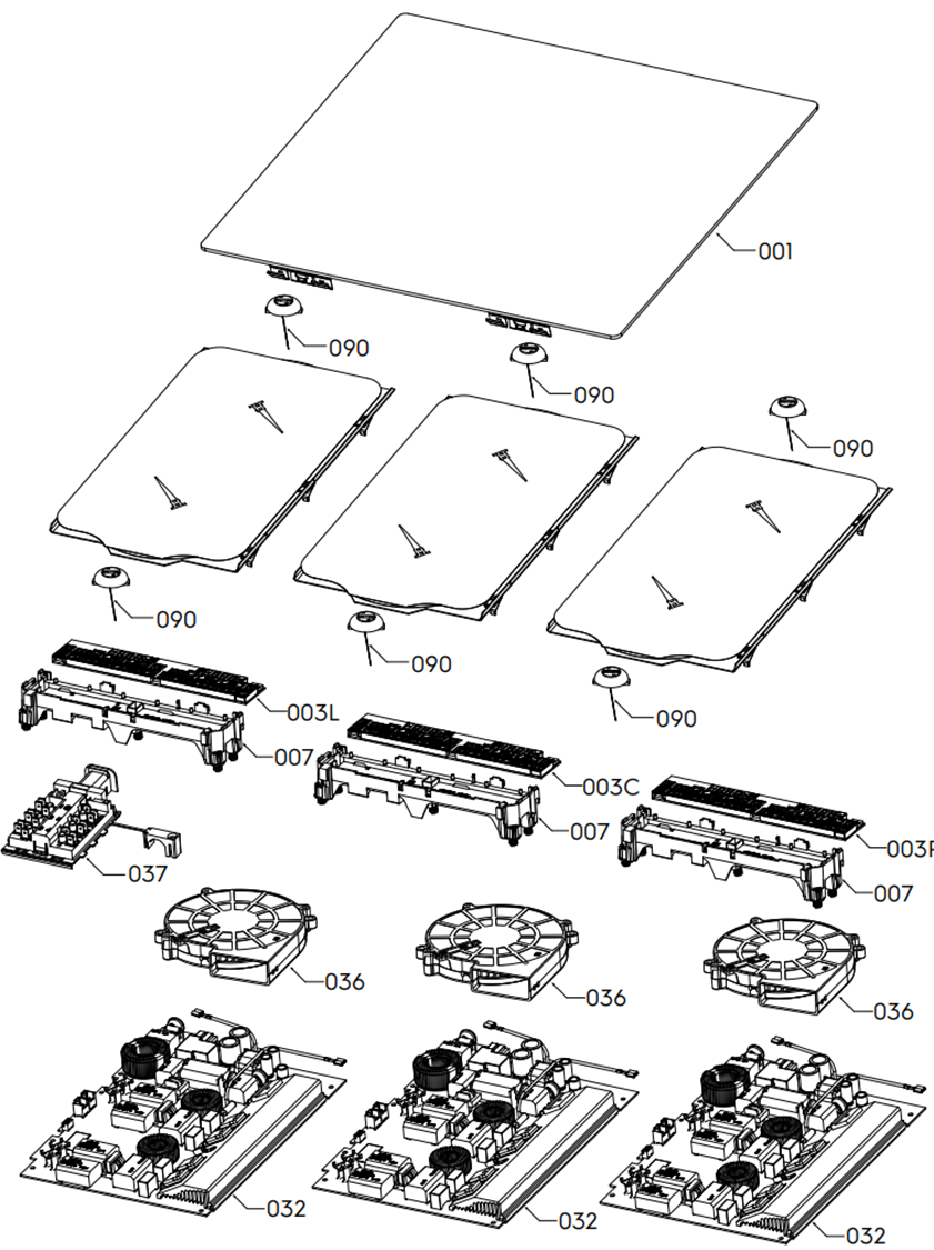 Napięcie [V] | Całkowity pobór mocy | Napięcie podłączane do płyty | Ilość modułów mocy (wymagających zasilania) | Przykładowy schemat techniczny | Uproszczone oznaczenie | Wymagane zabezpieczenie (ilość bezpieczników x wartość) |