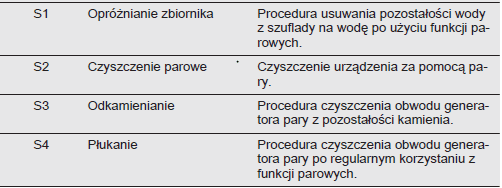 Komunikaty S1, S2, S3, S4 przypominają o konieczności oczyszczenia układu pary.