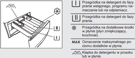 Szczegółowe informacje dotyczące budowy szuflady na detergent w Twojej pralce oraz zaleceniach dotyczących stosowania środków piorących znajdziesz w instrukcji obsługi swojego urządzenia. Możesz ją znaleźć na naszej strony internetowej, wystarczy, że klikniesz w "Znajdź instrukcję obsługi" po prawej stronie.