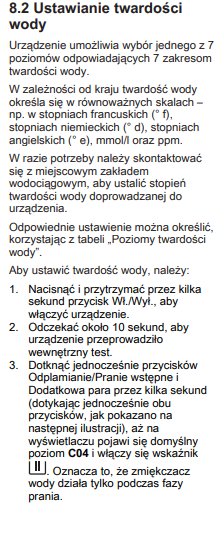 - Procedura ustawiania twardości wody zależy od elektroniki danego urządzenia.
