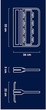 Poniżej znajdują się szczegółowe wymiary kosza na kieliszki w zmywarce E9DHGB01: