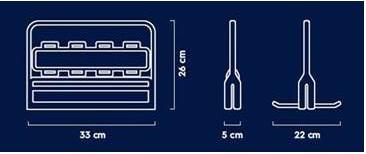 Dodatkowo górną rączką można poruszać w celu dostosowania do wysokości kieliszków. Produkt ma wysokość 26 cm, a więc wysokość kieliszków nie powinna przekraczać maksymalnie 25 cm.